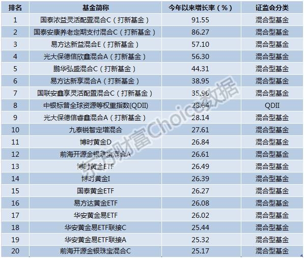 截至6月30日,在2016年上半年基金业回报率前二十排行榜中,八支打新基金和一支qdii基金占据了榜单前九名,占据榜单剩余11席的都为混合型基金。